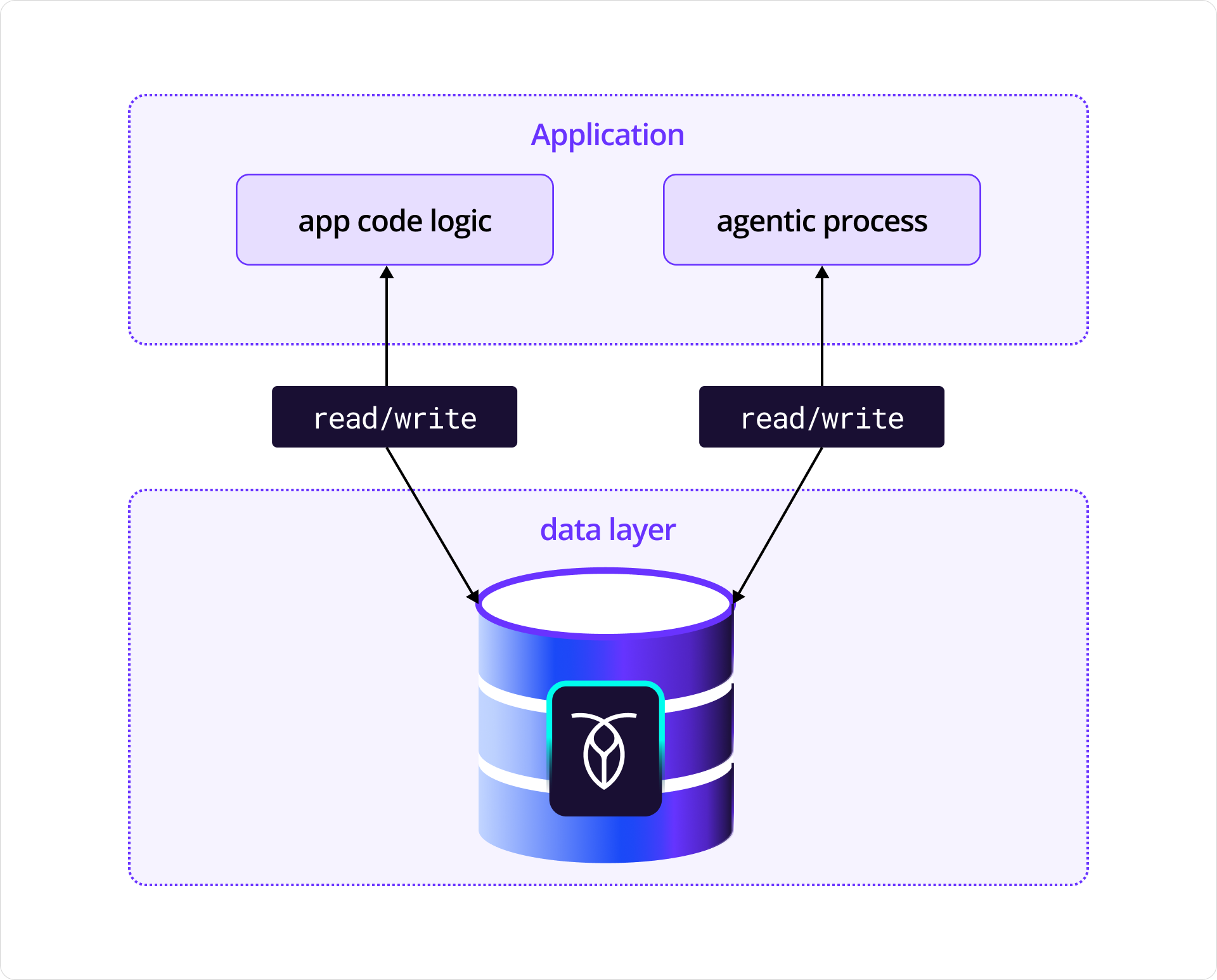 Diagram of application with code logic and agentic process both reading from and writing to CockroachDB.